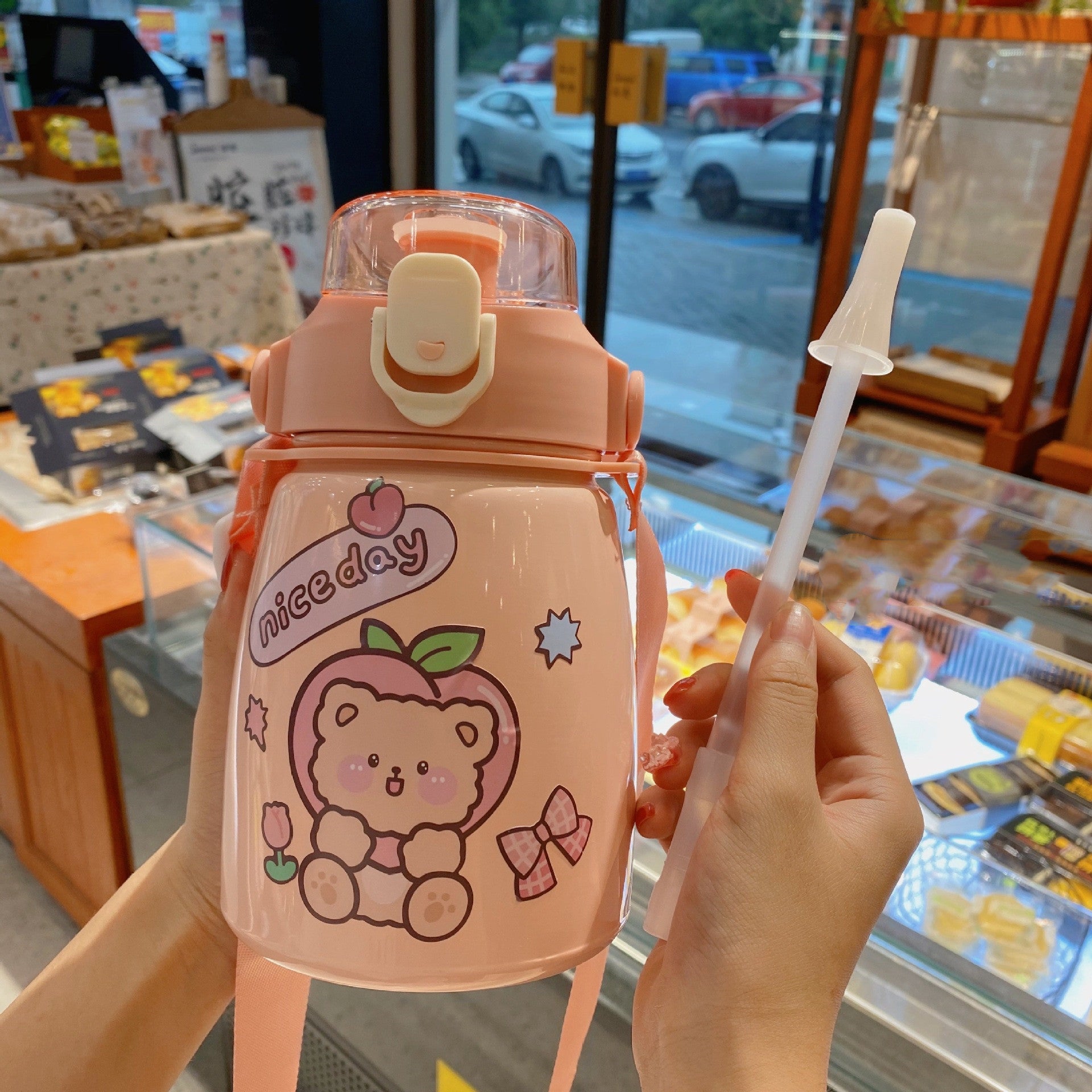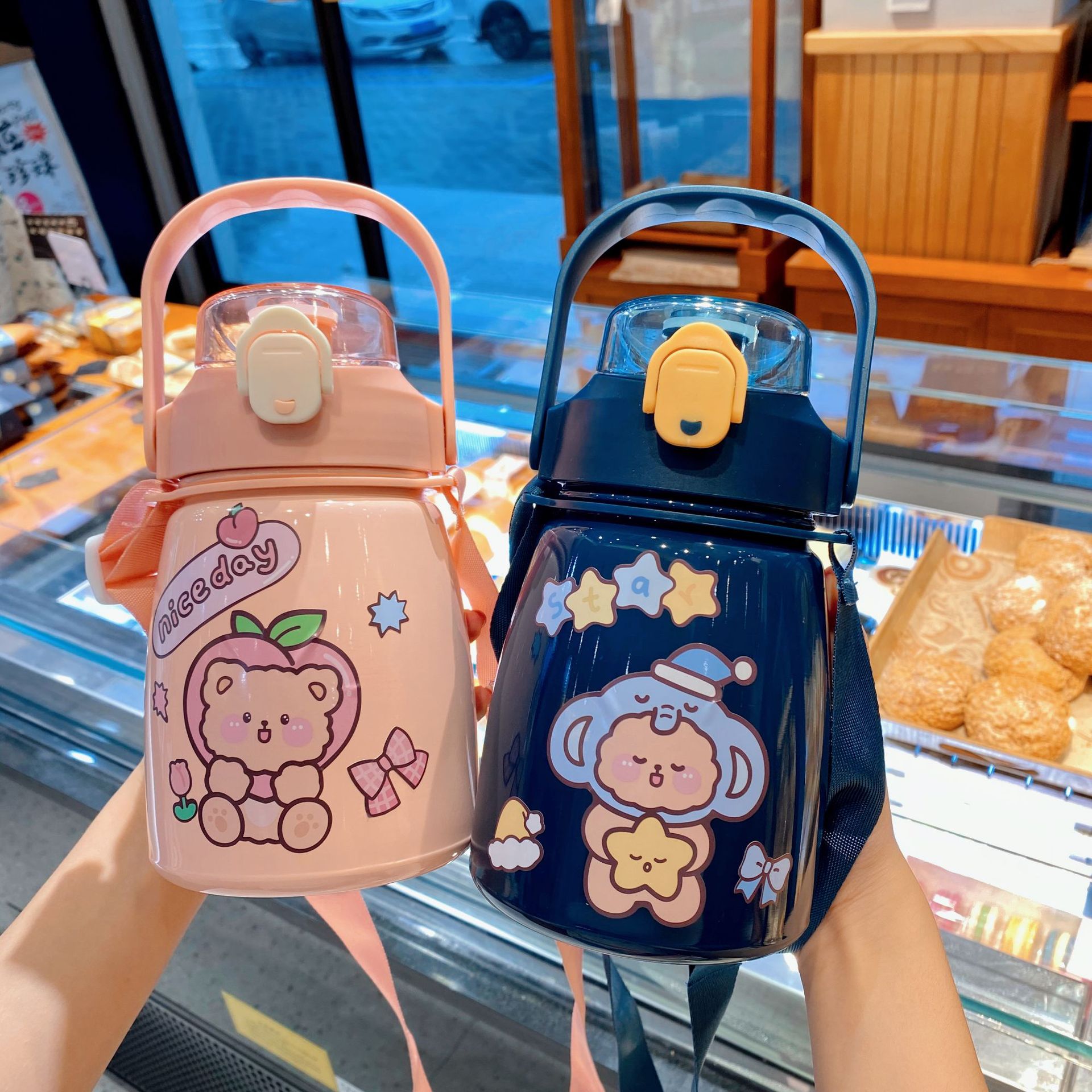 Sweet Animal Characters Stainless Steel Tumbler With Straw 850ml